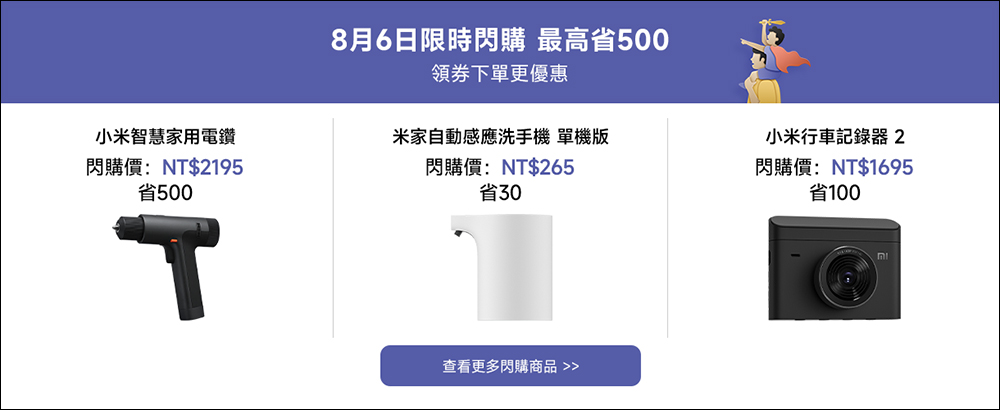 自 8 月 3 日 00:00 至 8 月 8 日 23:59 小米父親節活動期間,每日還有不同的限時閃購商品。每日閃購商品數量有限,售完為止。