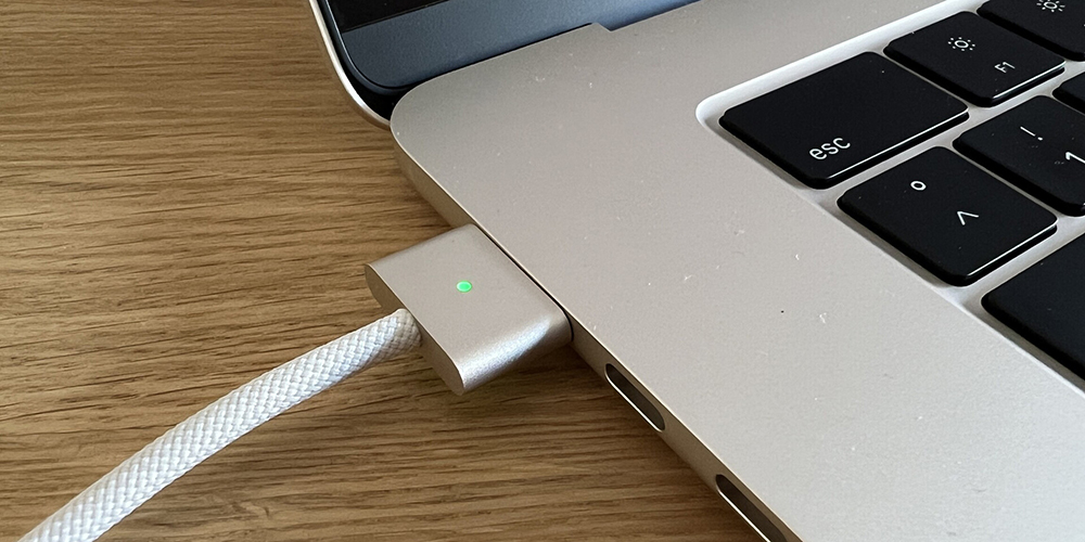 接著是「MacBook 非常安靜」,跟很多同等級 Windows 筆電不一樣,15 吋 M2 MacBook Air 非常安靜,沒有風扇的噪音,用戶使用起來不會被噪音吵到。「具有 MagSafe」也是 Macbook 很大優勢,用戶不小心拉到充電線時會自動脫落,不用擔心損壞到 MacBook,大多數 Windows 筆電都是使用圓形連接器,不僅外觀不好看,使用一兩年後,連接處也會變得有些鬆動。