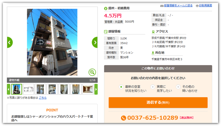 下圖是我從 SUUMO 找到類似我們公寓的物件,也是 1LDK,空間差不多大,建築年份在 10 年內,走路到車站大約 15 分鐘,這間每個月房租加管理費要 17.1 萬日圓,比我們租的還貴一倍: