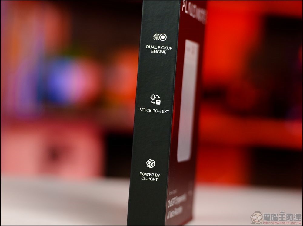 外盒側面也標示了產品的特點,如聲音轉文字、結合 ChatGPT 等: