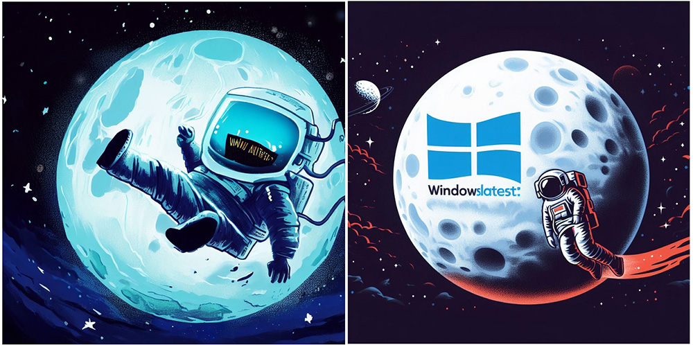 除了 Copilot,微軟也宣布 Bing Chat 增加 DALL-E 3 模型的支援性,目前已經有一小群用戶可以搶先體驗到,下圖是外媒 Windows Latest 製作的比較圖,左邊為之前的 DALL-E 2,右邊則是最新 DALL-E 3,圖片品質更好,也成功在月球表面上加入 WindowsLatest.com 字樣:
