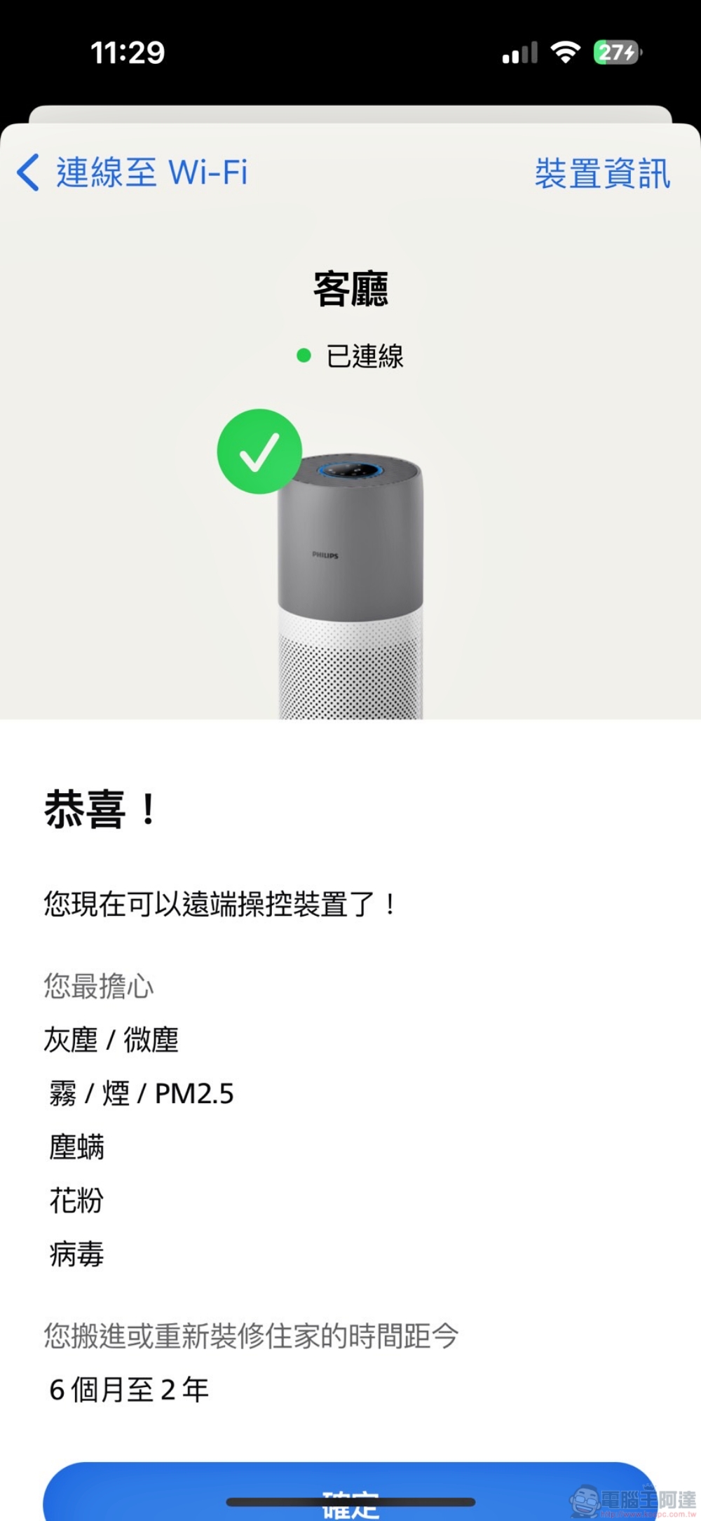 第一次使用時,只要按照飛利浦 Air+ App 指示就可以輕鬆完成連線配對。
