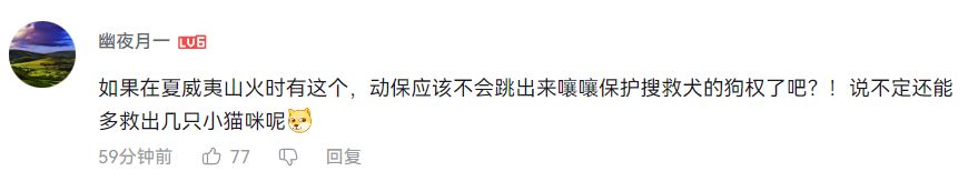 還有一位網友說如果夏威夷火災時有機器狗的話說不定會有更多貓咪獲救,動保也不會對搜求犬的狗權有意見。(小編感覺機器狗應該還不太適合使用在搜救,雖然機器狗搜救不會發生像搜救犬一樣腳受傷的問題。但是機器狗沒有味覺,而搜救犬的工作很大一部分是使用味覺所以搜救犬還是沒辦法被取代。)