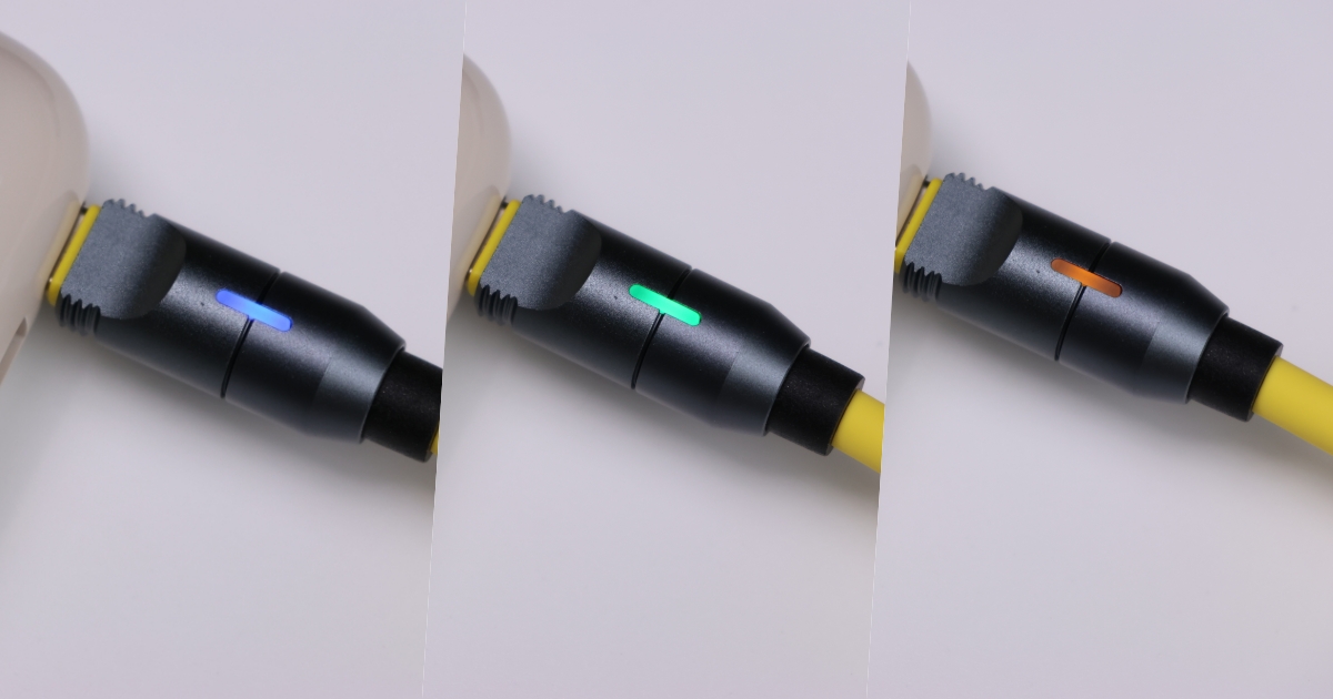 如果充電燈號是藍燈,代表是標準充電狀態,綠色代表是快速充電,橘色代表是涓流充電,例如手機充到 80% 之後通常都會進入涓流充電狀態,這時候就會是以橘燈顯示。