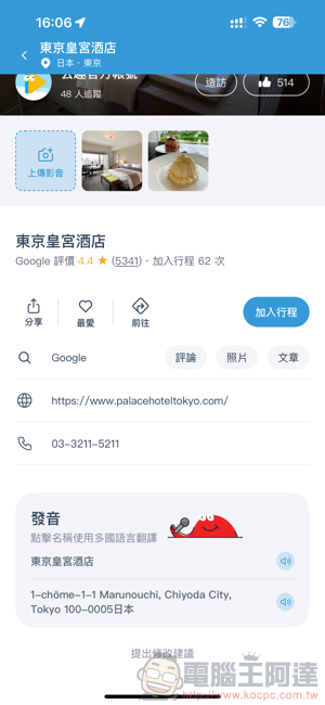 這類旅程規劃的功能大同小異。但個人很欣賞去趣 chicTrip app 除了整理了營業資訊等,最底部還會有每個景點的名稱與地址的快速語音按鈕 – 相信這在行程中間應該會非常有幫助!而如果大家滿意這個行程的話,就可以點「加入行程」加入該日: