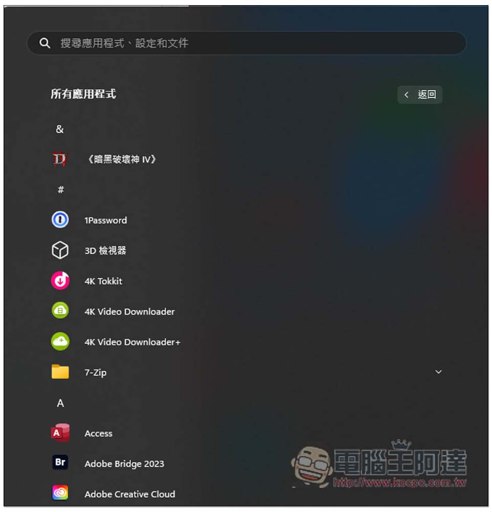 目前打開開始選單,只會顯示已經釘選的應用程式,如果要使用那些沒有釘選的,則需要進到所有應用程式清單裡面找,某些用戶不太喜歡這種第二層設計,大約有 1,100+ 票,這就個人喜好,目前的設計方式我比較喜歡。