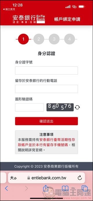 接著輸入你在該銀行的個人資料與扣款帳號: