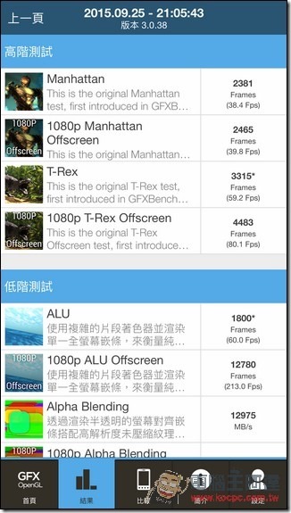 在 GFXBENCH 測試底下可看到 iPhone 6S 驚人的效能表現,以現今 Android 手機效能表現最好的 三星 Note5 相比,光霸王龍 1080P 這個項目的 80FPS 就贏過 Note5 許多(50FPS),其他項目更是海放近一倍有餘,在圖形效能來說 Apple 設計的處理器還是有他的一套: