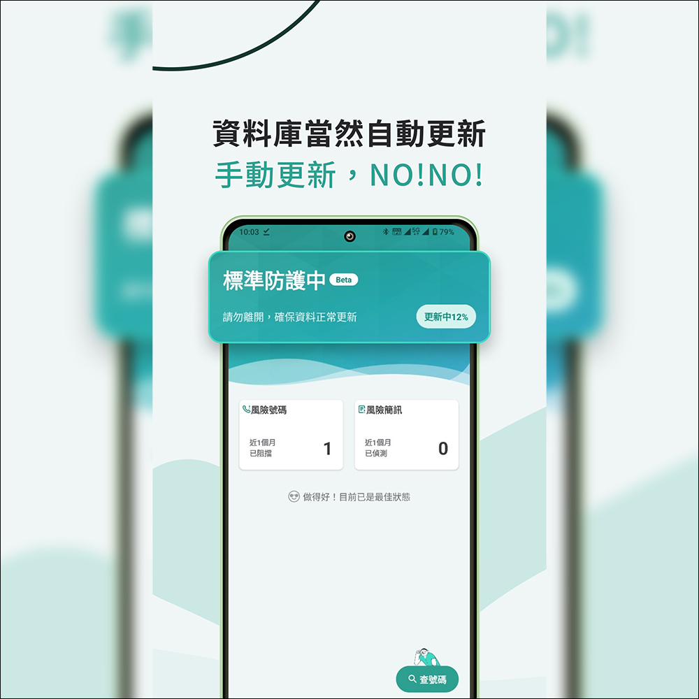 防詐 APP 如果需要用戶手動更新,在防護力就會大打折。不過防詐戰警個人版 APP 免手動更新,每日會自動更新號碼資料庫,提供最即時的防護。