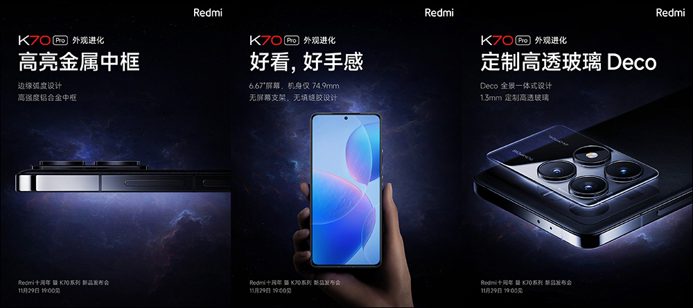 Redmi K70 系列旗艦新機、Redmi Watch 4 等新品將於 11/29 發表, K70 Pro 外觀提前揭曉