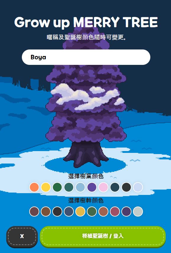 最近很流行的線上聖誕樹「Grow up MERRY TREE」,讓你可以免費製作屬於自己的聖誕樹,選擇自己喜歡的聖誕樹和樹幹顏色,大家的聖誕樹不再只有常見的綠色。你還能為朋友們的聖誕樹放上裝飾品,還能在擺放裝飾品的時候寫下對朋友的祝福。不管是家人、情人、朋友還是曖昧對象都可以玩。
