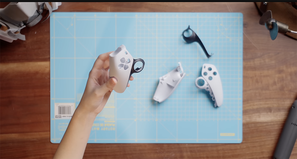 最終還是從原本的 DualSense 手把下手,不過是直接在網路上買外殼,只需要 60 人民幣(約台幣 270 元)。從邊緣慢慢切割,把不必要的給拆解掉,最終就獲得兩邊分開的搖桿: