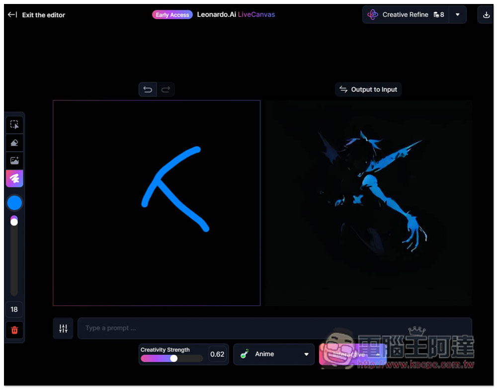 雖然過去早就有手動畫,然後透過 AI 生成的繪圖工具,不過都需要等到全部畫完才能生成,沒辦法實時。即使是用提示指令也是,而且生成時都要等上十幾秒。隨著 AI 不斷進化,已經開始有支援實時生成的 AI 繪圖工具,這篇要介紹的 Leonardo.AI LiveCanvas 就是其中之一,你每畫一撇,AI 就會根據當前的圖案,來生成符合的結果,不需要等到全部畫完,而且更好用的地方在,你還能調整創作強度、圖片風格類型,現在還免費使用,想玩玩的人可別錯過。