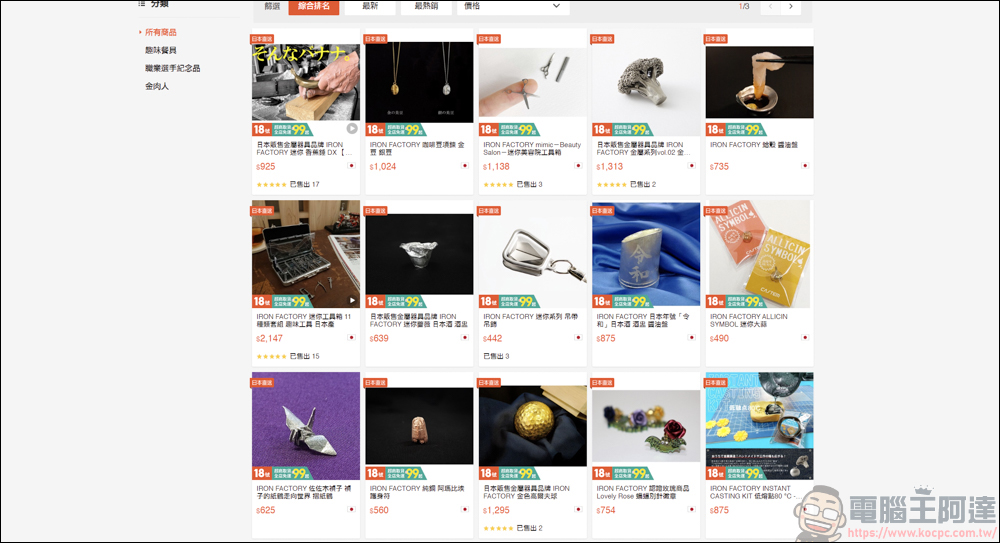 而在 Castem 的蝦皮官網上,也能看到許多用金屬打造的趣味產品 :