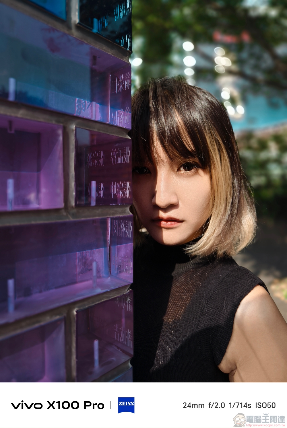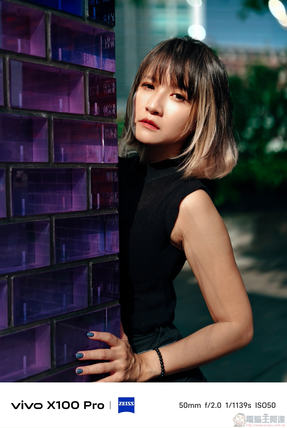 考量到這點,vivo X100 Pro 在人像模式裡做了一些調整,切換到人像模式之後就可以直接點選 24mm、35mm、50mm、85mm 以及 100mm 五種常用的人像焦段來拍攝,不論是想要使用 24mm 帶點環境風景,或是用 100mm 專注人物特寫都可以自由切換,而且還可以運用不同的蔡司人像效果來拍攝,例如我個人很喜歡的 Sonnar 奶油光斑以及風格比較強烈的 Biotar 旋轉光斑,今年還新增了 B-Speed 光斑效果,讓散景光點變成三角形的也很有趣。