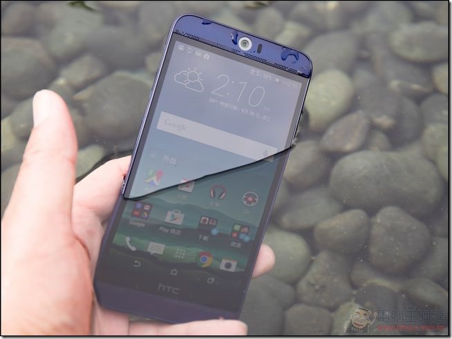 HTC Butterfly 3 最受消費者喜愛的特點之一就是支援 IPX5/IPX7 全機無蓋防水能力,整支手機丟到水中也沒有問題(話說我們一群人在拍攝這個鏡頭時,剛好有一群外國人經過,看的嘖嘖稱奇,可能覺得這些人為什麼要把手機丟水裡 XD):