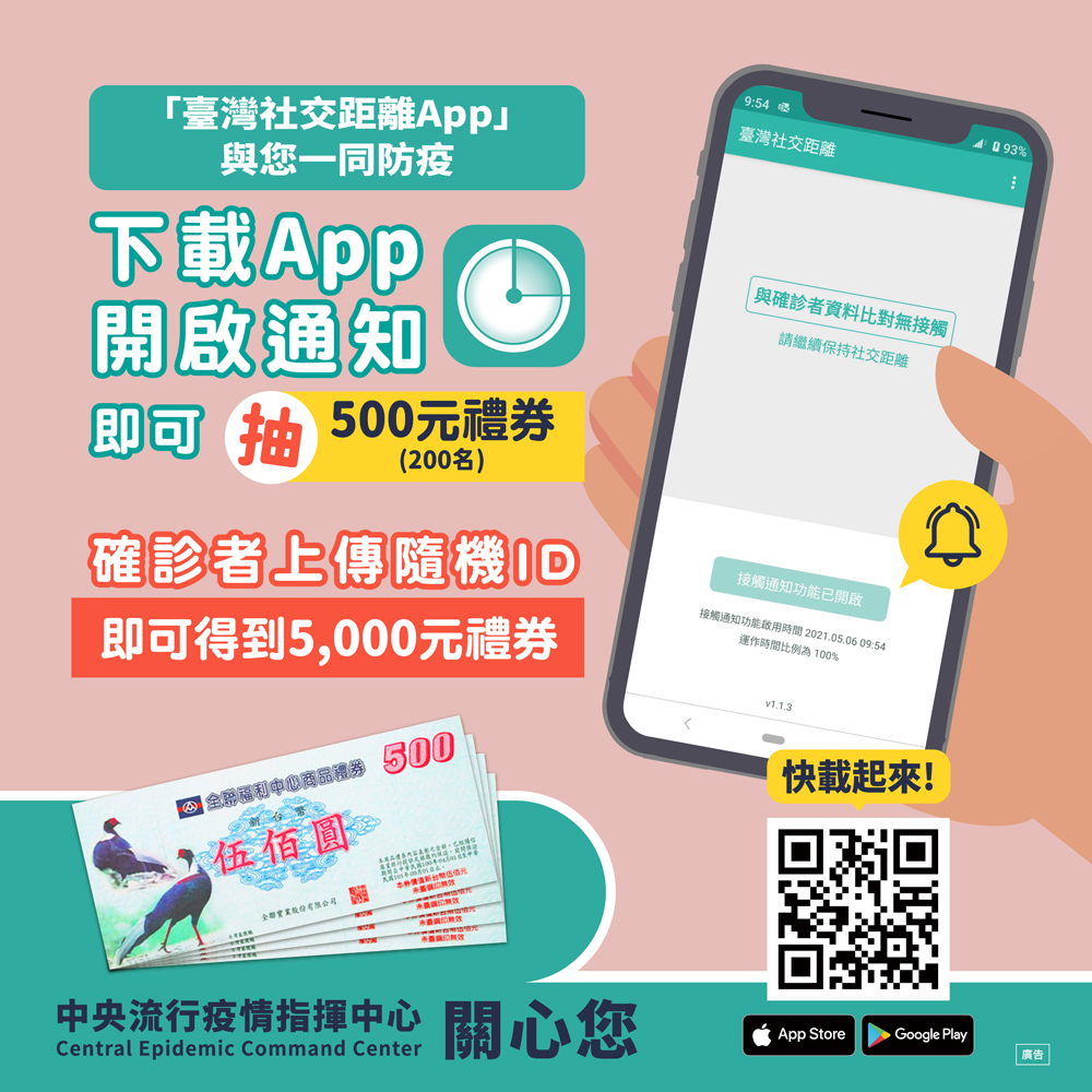 「臺灣社交距離APP」是由衛生福利部疾病管制署與行政院資安處、台灣人工智慧實驗室(Taiwan AI Labs)合作開發,自2021年3月12日首次發布以來,曾下載數超過1000萬人次,APP利用手持裝置的藍牙訊號強度,偵測使用者間接觸的距離與時間,以科技輔助記錄其過去14天內的接觸史,當使用者接獲通知為確診者時,經衛生單位徵得確診者同意後可上傳資料,App將主動通知過去 14 天曾接觸過的對象(例如曾與確診者於2公尺內接觸2分鐘以上者)並出現警示畫面,提醒用戶注意最近的身體狀況。後來透過更新也持續追加簡訊實聯制、疫苗接種數位證明等。