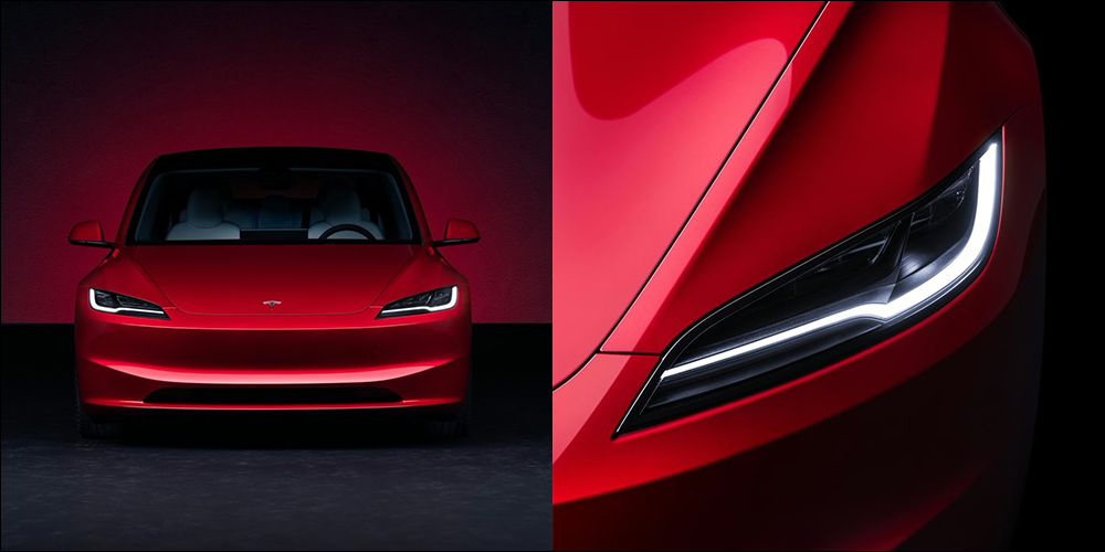 外觀設計方面,特斯拉 Model 3 煥新版除了具備極低的 0.22 Cd 風阻係數,可觀察到車頭變得更流線、頭燈變得更銳利,前保桿的設計也有所變化。