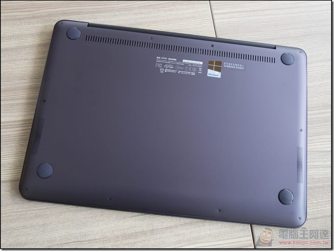 機身背面 D 件特寫,與 UX305FA 有一個小小的不同之處就是為了因應較高效能的 Intel Core i7 5500U 處理器,在底蓋區域增加了散熱孔:
