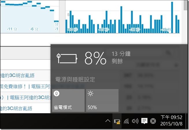 最後來測試一下續航力表現,以省電模式下使用 50% 螢幕亮度持續進行網路連線與頁面更新,約可使用 5 小時左右(一般使用並不會持續更新頁面,續航時間會更久),如果亮度調暗的話表現會更好: