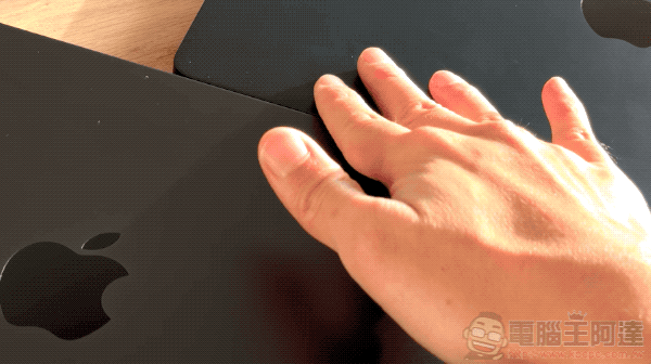 正式拆開紙膜,我們也直接與 Touch Bar 世代的 13 吋太空灰色的 MacBook Pro 比較一下機身顏色 – 不比還好,一比發現真的顏色深了很多,也真的感受到了不同於以往的蘋果筆電氣質。