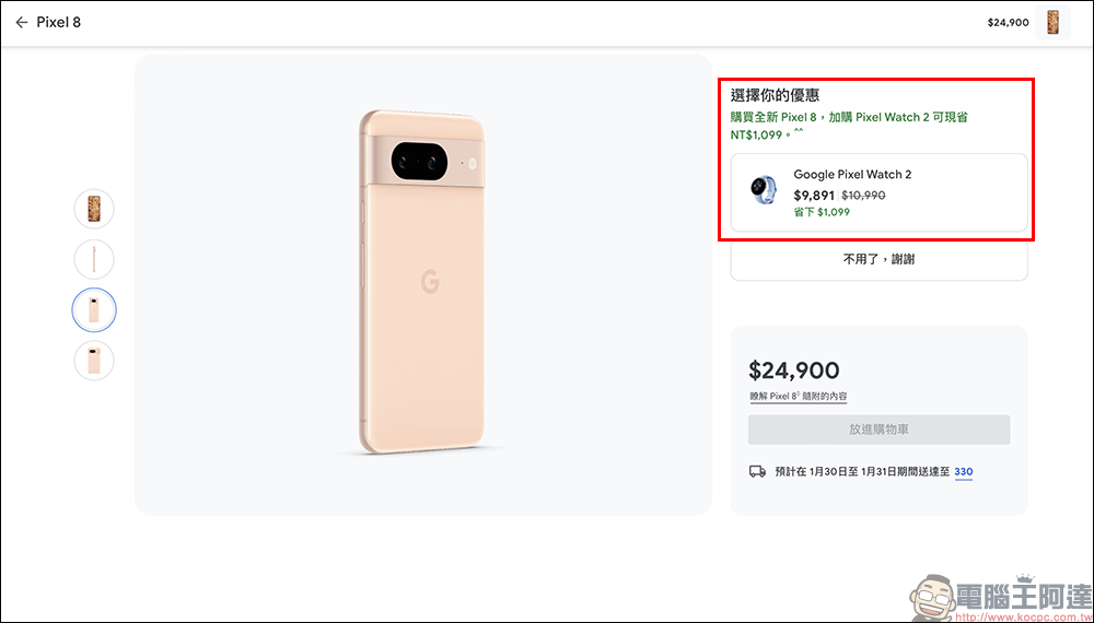 Google 商店新年特惠正式登場!購買 Pixel 8 系列手機獲得最高 4,888 元商店消費點數,還可免費獲得限定 Pixel 手機包!智慧穿戴商品同步祭出優惠