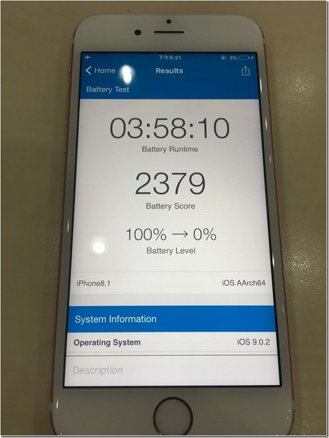 經過5小時40分左右,使用台積電16奈米A9處理器的iPhone 6s 16G終於電力歸零:
