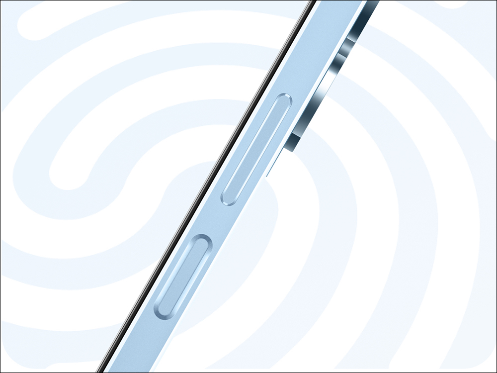 realme Note 50 在機身側邊配置電源鍵和音量鍵,電源鍵也整合指紋辨識功能。