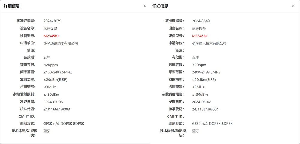 近期根據微博網友的爆料,小米正在積極開發下一代新款小米手環,近日也有疑似 Xiaomi 手環 9 和 Xiaomi 手環 9 NFC 版通過無線電認證,設備型號分別為 M2345B1 與 M2346B1 ,也因為已經取得了中國的無線電使用認證,外媒也普遍推測這意味著距離 Xiaomi 手環 9 和 Xiaomi 手環 9 NFC 版發表的時間已經快了,考量去年 Xiaomi 手環 8 是在 4 月就於中國發表,這時間點也是吻合的。
