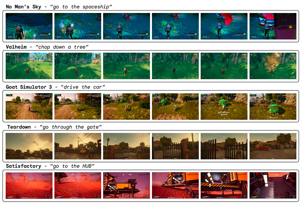 SIMA 不僅需要針對每個新的(遊戲)世界學習,從最簡單的選單功能操作到像是採集資源、製作裝備甚至是駕駛遊戲中載具的各種技能。還需要能將這些技能與自然語言相關聯 – 不然就不能用口語命令它了。