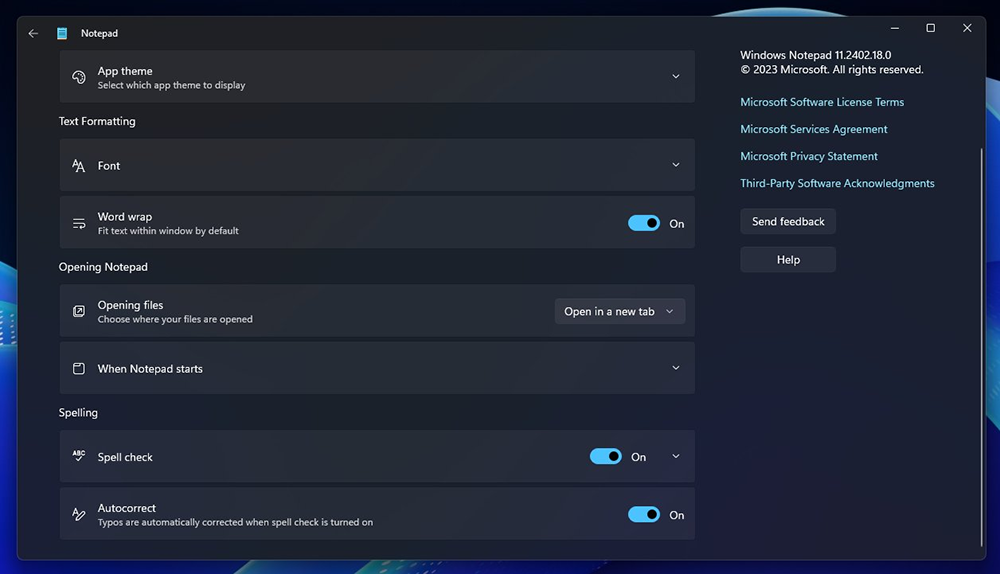 是說,在這個被 X(前推特)社群平台 @PhantomOfEarth 所挖到的功能中,微軟不僅提供了拼字檢查/自動修正的功能開關。想不到還針對包括:.txt、.md、.srt / .ass、.lrc 與 .lic 等不同格式的文件檔分別選擇是否要開啟拼字檢查。雖然這項功能看似普通。但這種貼心的選項也算是為了 Notepad 可能被用做程式碼編寫而有了相當貼心的進階選項。