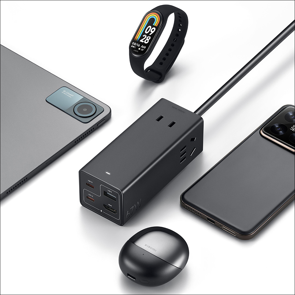小米最近在中國推出一款新產品—「小米 67W 桌面快充插座 Pro」,機身配置 1 組 USB-A、1 組 HDMI、2 組 USB-C ,以及 3 組 AC 插座,能滿足日常辦公與娛樂設備用電需求。