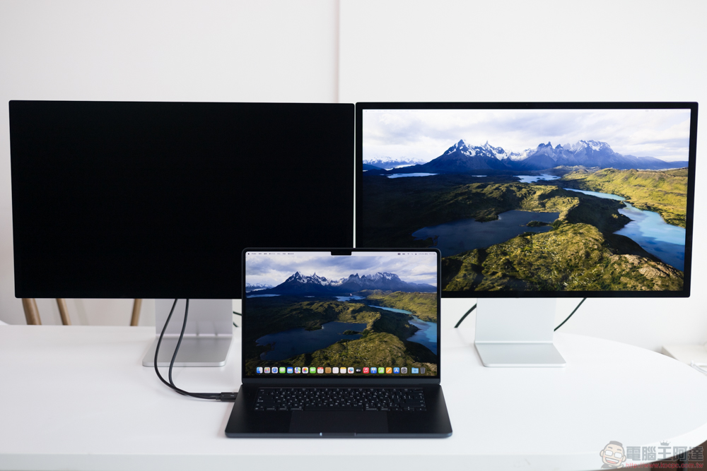 ▲圖:這次我們借到雙  Studio Display 來體驗 M3 MacBook Air 更好的外接能耐 – 底下還會有進一步的體驗心得。