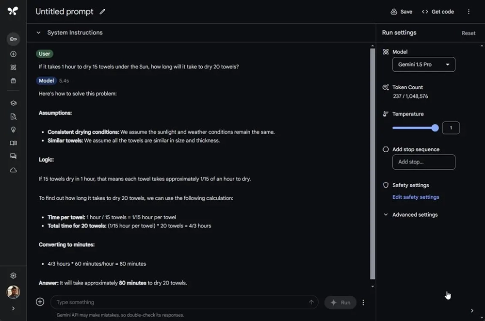 就以「計算毛巾的烘乾時間」來說,Beebom 的問題不算太困難:「15 條毛巾需要花 1 小時烘乾,那 20 條毛巾要花多久?」