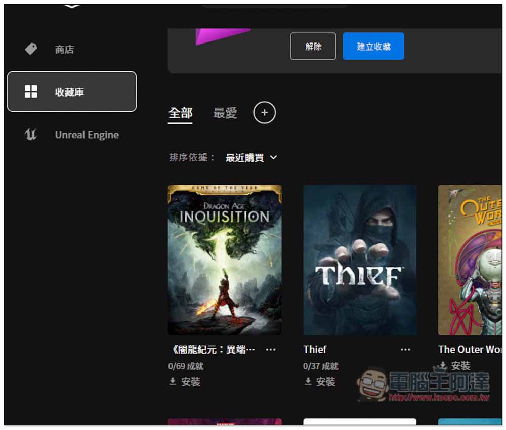 顯示這畫面就代表入手成功啦!這款遊戲已經永久收藏到你的 EPIC 帳號了,想要玩時再打開 EPIC 啟動器安裝遊戲: