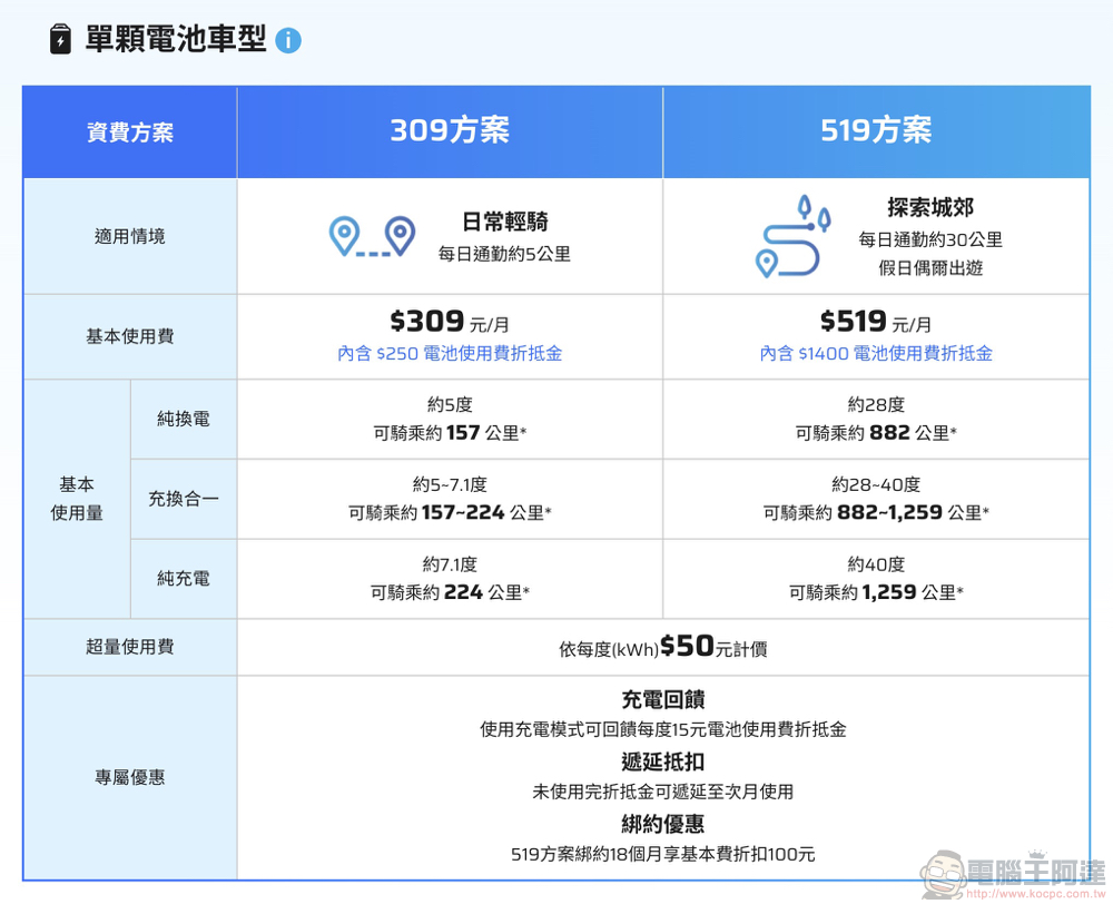 光陽也希望大家可以認真研究看看,基本上這波除了最入門的 309 方案以外,其他的所有方案包括:519、509、809、1259,基本上都是在價格調整之後都有提供更多的電池基本使用費。因此要說是全面漲價真的並不公平!提到 Ionex 的最新資費方案雖然真的有根據這些年來的大數據進行調整,但基本上都依然是市場上最有競爭力最值得的選擇。