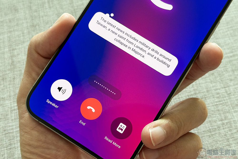 最後,個人也蠻好奇,既然通話有提供擴音了,為什麼不能用按鈕等其他方式啟動「Call Arc」的語音介面。目前只能猜測,也許這項功能的主軸就是希望讓你更直覺地在不打擾其他人的狀況下快速進行語音搜尋,所以才不預設讓你隨時進行擴音的 AI 對話搜尋(可能啦)。