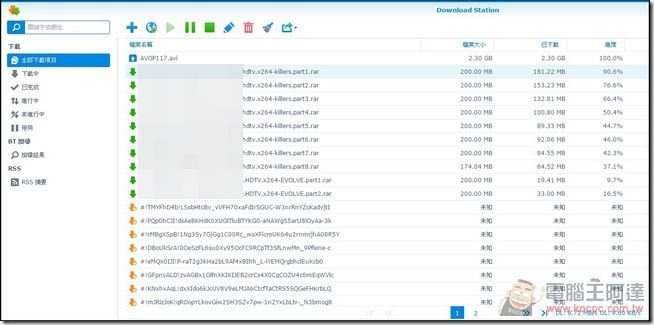 相信很多人都會使用到 BT 下載檔案,以往都是用電腦做這件苦工,但是這樣的缺點就變成電腦不能關機,要放著BT軟體一直進行下載,而且 BT 下載多多少少還會拖慢系統效能,以後這個工作交給 Synology NAS 吧!只要到套件中心安裝「Download Station」,就可以讓 Synology NAS 幫您下載任何 BT 檔案: