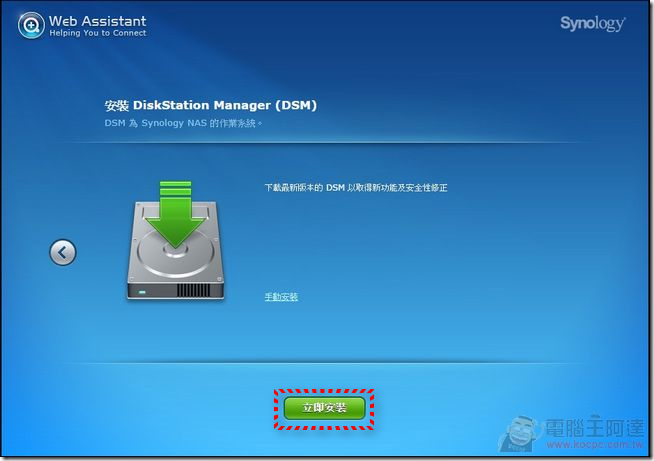 接著安裝 Synology 所開發的 DiskSation Manager(DSM),其實這是一個專門為 NAS 所開發的圖形界面 LINUX 平台,穩定度與擴充性都很好,安裝 DSM 時原本硬碟裡面的所有資料都會被格式化(硬碟建議使用同品牌、同型號的硬碟,真的沒有同型號硬碟可安裝使用的話,Synology 官方也有列出相容清單,只要使用官方推薦的型號,使用起來也不會有太大問題):