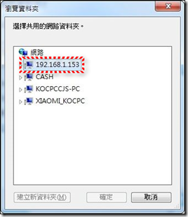 設定連線磁碟(Y:),資料節輸入 Synology NAS 的IP位置: