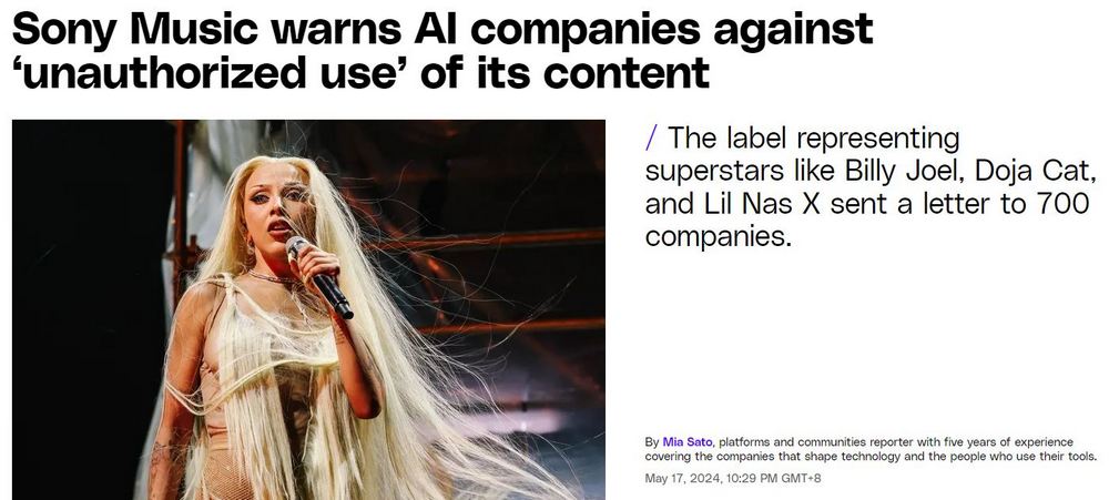 不過感覺 YouTube 應該會很難談下這份合作,因為之前 Sony 音樂就已經警告過 AI 公司不要未經授權使用他們的音樂。環球音樂集團與 TikTok 的授權合作也因為 AI 生成音樂缺乏足夠的保護意識而宣告破裂,甚至環球音樂集團旗下的音樂還從 TikTok 下架,大家都沒辦法拍 Challenge。