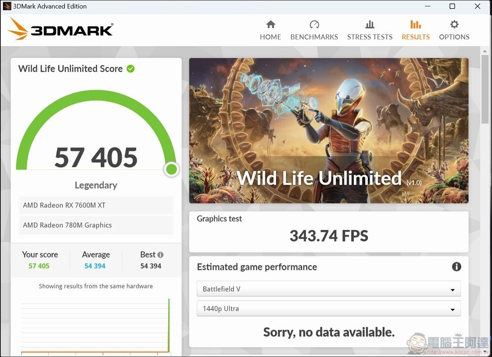 NightRaid 得分為 56154 分,圖形分數高達 102069 分: