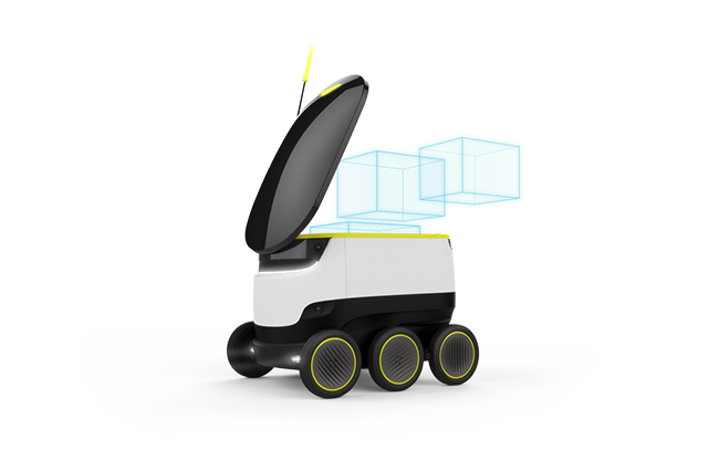 Starship Robots 外型長得跟一般機車椅座很像,配備六個輪子,上方蓋子打開後大約可放入兩大購物袋的容量。跟一般無人機器人不一樣的地方是,Starship Robots 雖然也搭載導航、可避開障礙物的自動駕駛,但遇到危險時,他們的員工都能隨時介入處理,也就是說遠端來操作它,來確保安全性。
