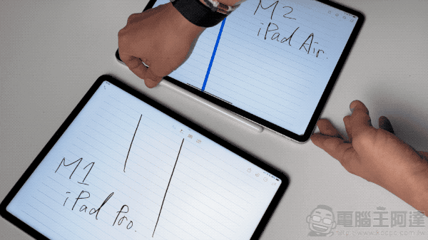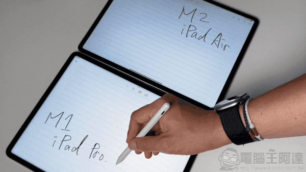說到黑科技的部分,大概就是 eiP Pencil 2 可以支援橫跨 Apple Pencil Pro 與老款 Apple Pencil 之間機型的能耐了吧 – 底下這台是 M1 iPad Pro。