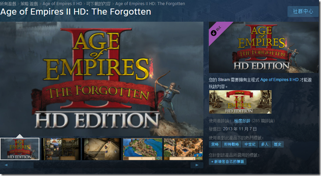 而現在在Steam上,《世紀帝國 2 HD 版》主程式,搭配兩年前推出的資料片《世紀帝國II:失落的帝國》與日前推出的最新資料片《世紀帝國II:非洲王國》,現在三套遊戲軟體,在11月9日前只需要272元,還在想著「黑快」、「城快」、「矛爆」、「馬爆」、「伐伐伐木工」嗎?那還不快點行動刷下去!
