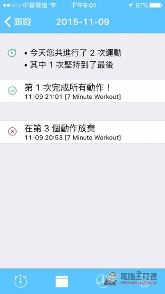 ▲ 點選日期後可查看更詳細的紀錄,包含你運動幾次、完成所有鍛鍊幾次、甚至在第幾個動作放棄過!
