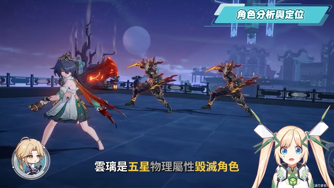 哈囉哈囉! 我是虛擬Youtuber璐洛洛,這次要帶來的是《崩壞:星穹鐵道》2.4上半卡池登場的全新五星物理毀滅-雲璃的角色培養全攻略,雲璃是一個擁有特殊反擊機制的輸出角色,若是不清楚自己是否需要抽取,洛洛會在稍後帶來關於雲璃的角色定位、機制解析、遺器/光錐/星魂效果推薦,三大常駐關卡的實戰配隊實戰等內容唷!