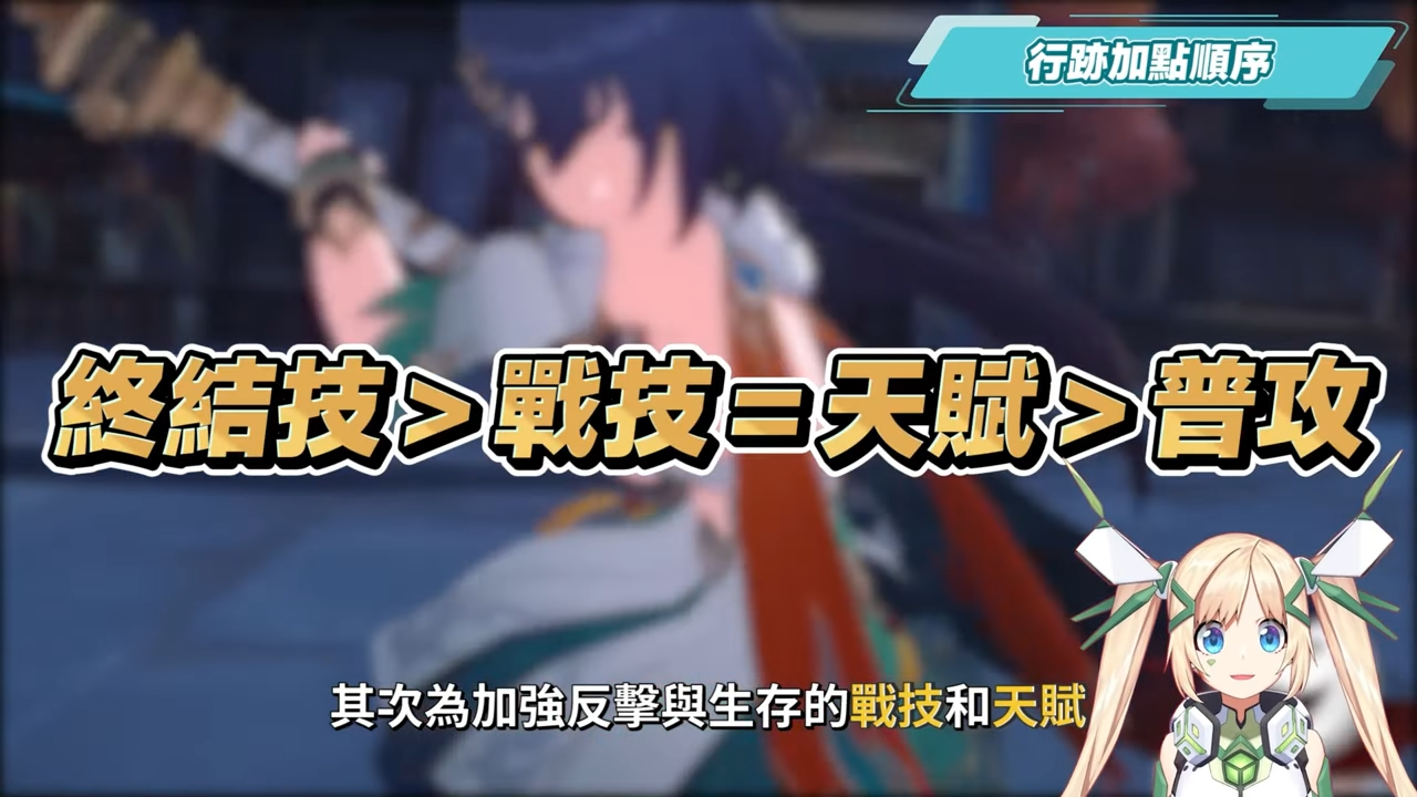 雲璃的行跡加點順序參考,優先點高核心輸出傷害的終結技,其次為加強反擊與生存的戰技和天賦,最後普攻的部分可以看資源和需求最後升級。