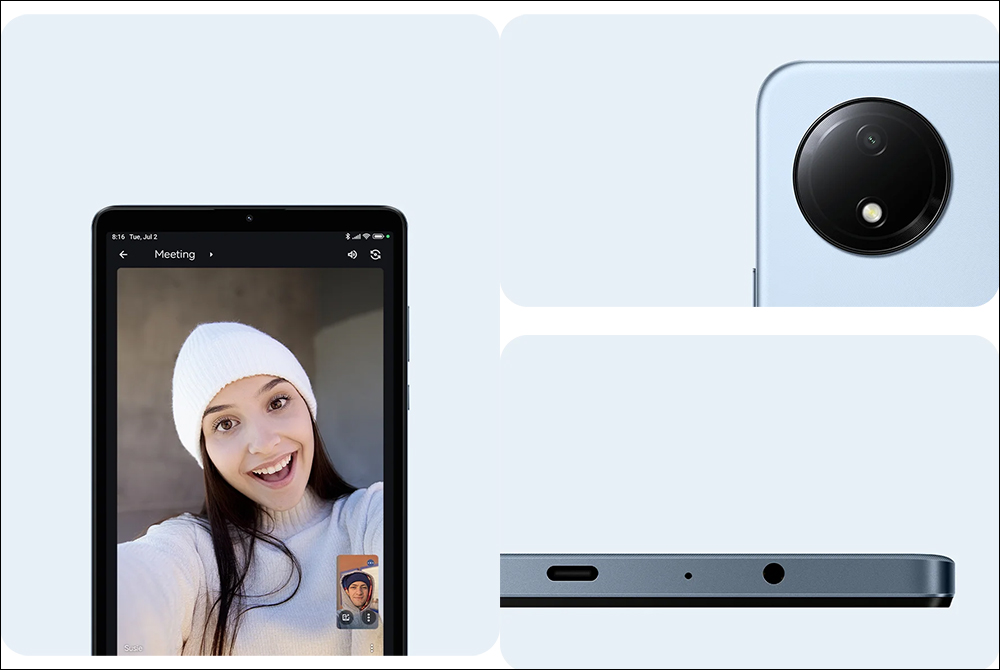 相機方面, Redmi Pad SE 8.7 系列搭載前置 500 萬像素視訊鏡頭,讓用戶能用它輕鬆參加線上會議或課程,而後置 800 萬像素主鏡頭可錄製 1080P 的影片。充電部分則採用 USB Type-C 充電接口,仍保留 3.5mm 耳機孔,為使用者帶來更多的便利性。