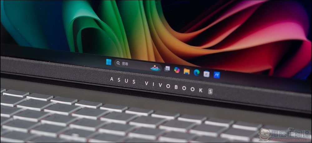 螢幕下方則是剛剛提到的超窄邊框,特別在這裡弄上了ASUS Vivobook S的字樣,莫名地讓整體質感提升了好幾個檔次: